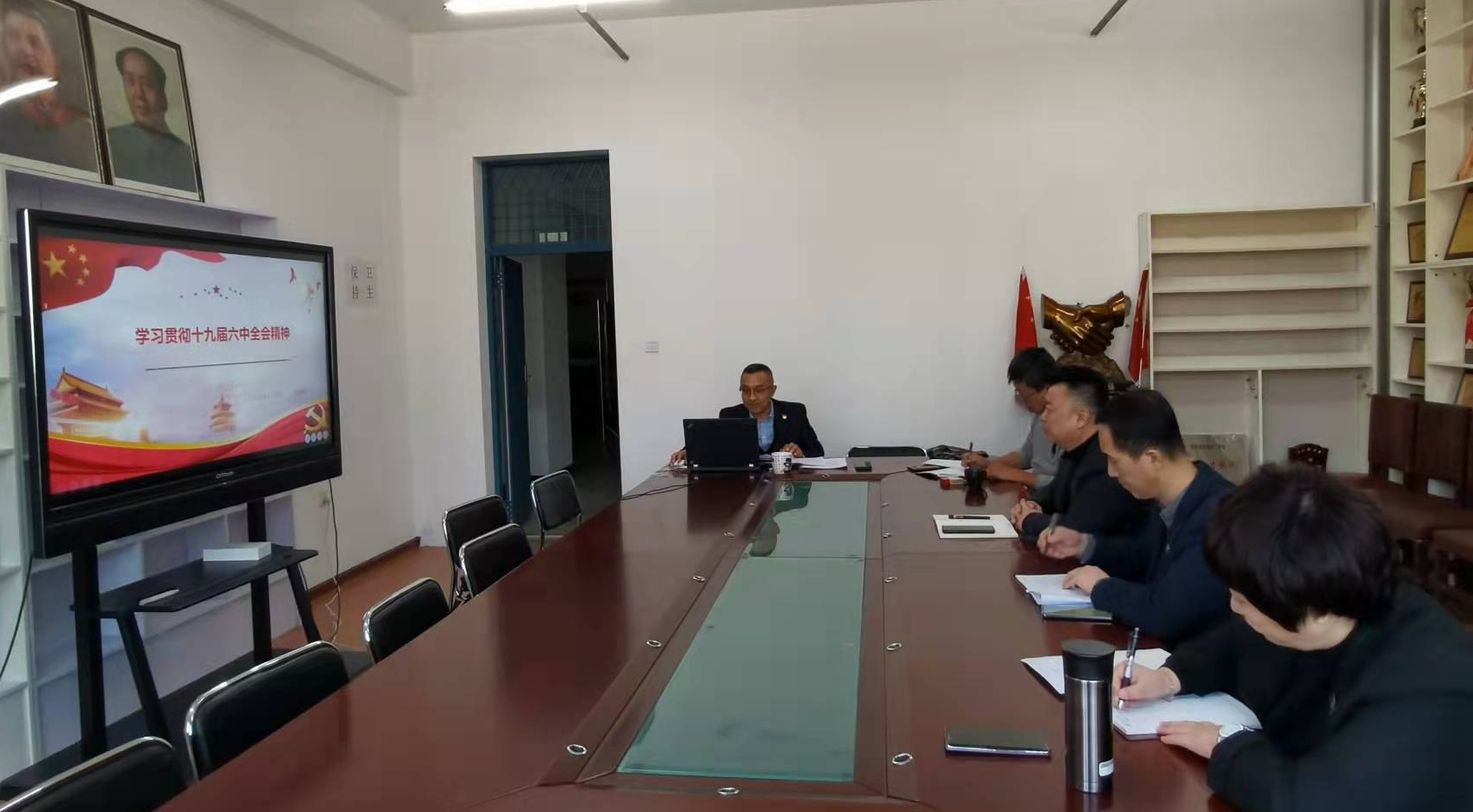 首先,肖庆生书记传达了党的十九届六中全会精神,主要从三方面组织学习:一、中国共产党中央委员会十九届六中全会议召开的背景与重大意义;二、中国共产党中央委员会十九届六中全会公报主要内容 、三、把学习贯彻党的十九届六中全会精神作为一项重要的政治任务抓紧抓好。