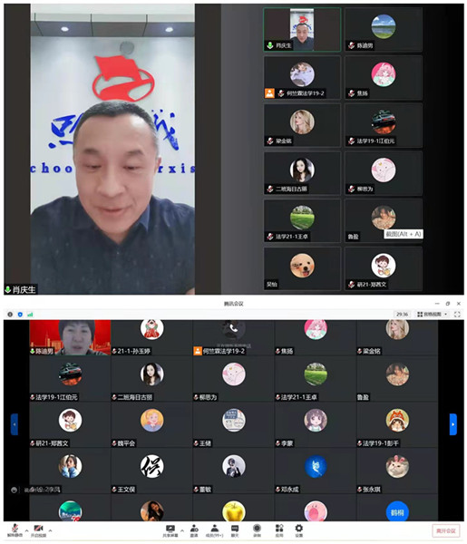 为了进一步贯彻落实校第四次党代会精神,在学生中掀起学习的热潮,马克思主义学院结合“开学第一课”,于2022年3月18日晚18:30采取腾讯会议的形式,邀请了马克思主义学院党委书记肖庆生为学生作“校第四次党代会精神解读。马克思主义学院党委副书记陈迪男主持会议,副处级辅导员刘祥蓉及马院全体学生参加了会议。