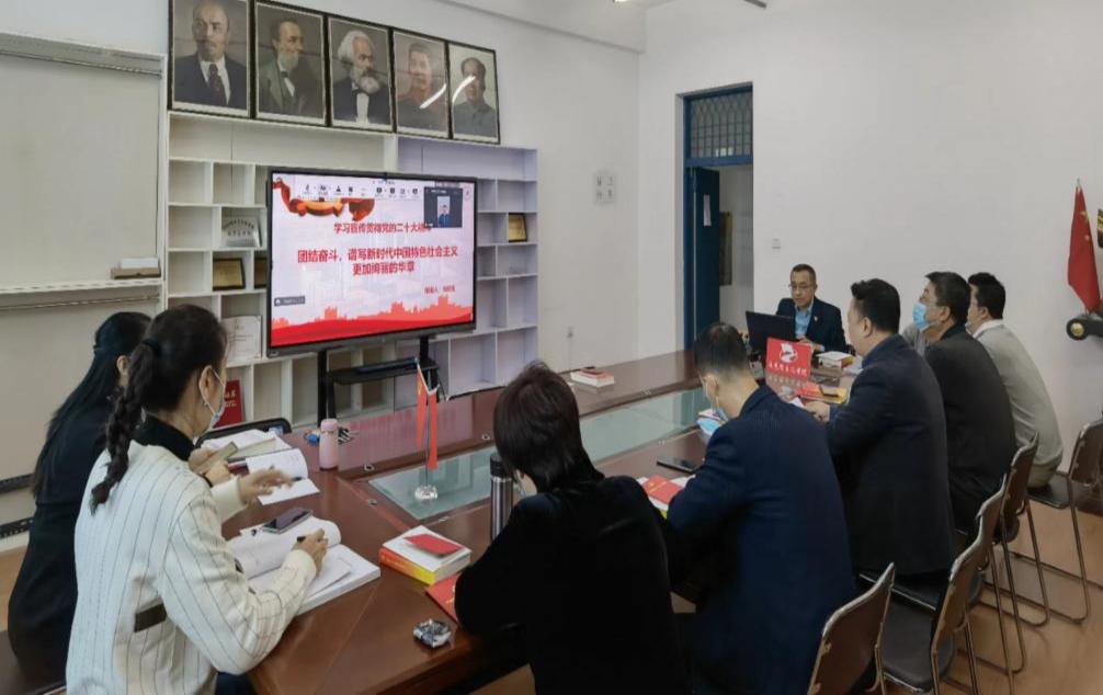 11月17日上午,马克思主义学院全体师生通过线上线下结合的方式,分别在学院E1603会议室和腾讯视频会议召学习宣传贯彻党的二十大精神动员会暨宣讲报告会,会议由院长孙明哲主持。