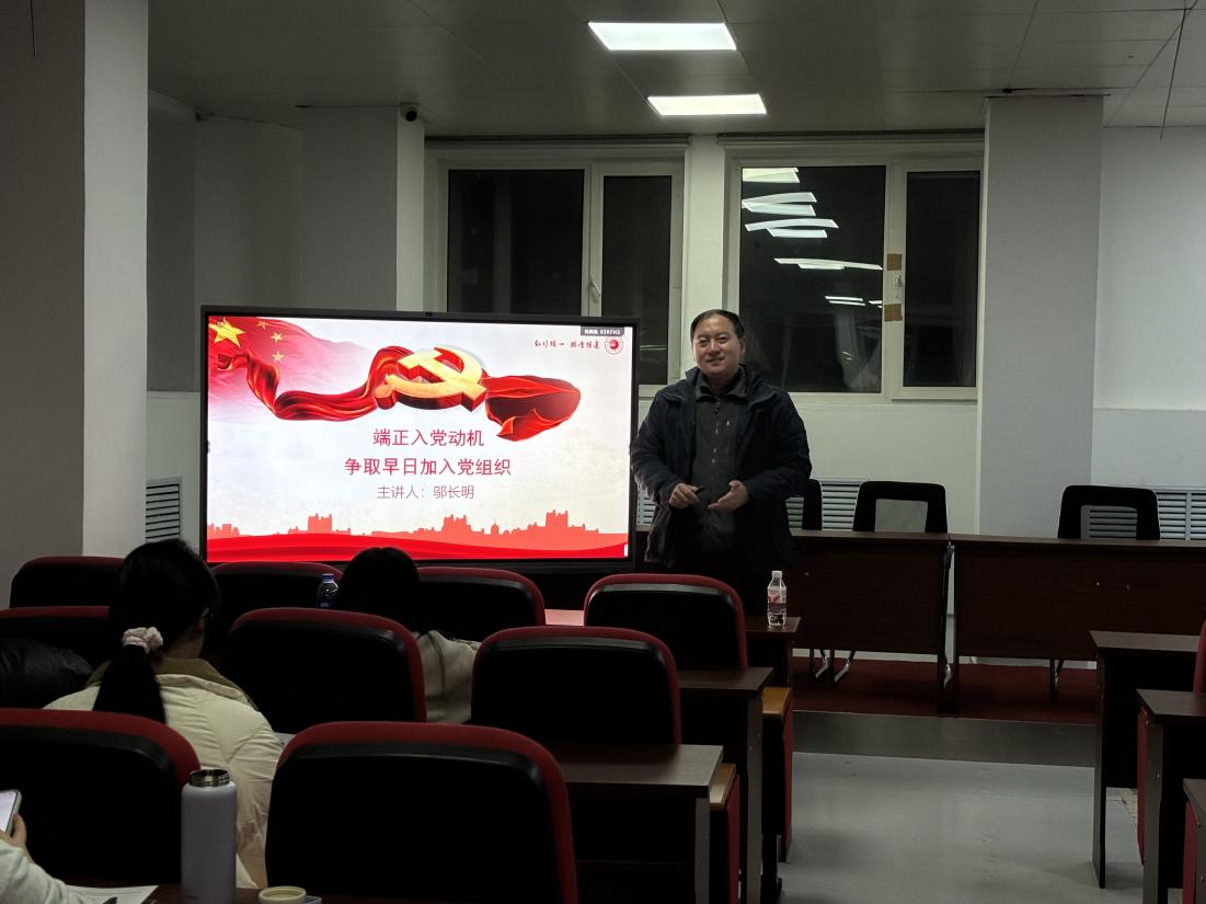 10月16日18时,学院党委副书记邬长明为学生、教工入党积极分子开展了“端正入党动机,争取早日加入党组织”为主题的党课培训。