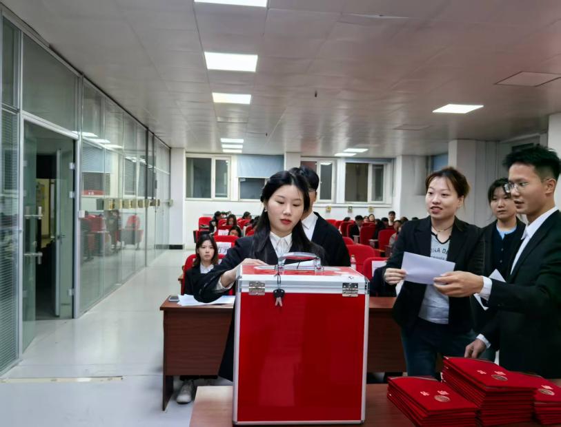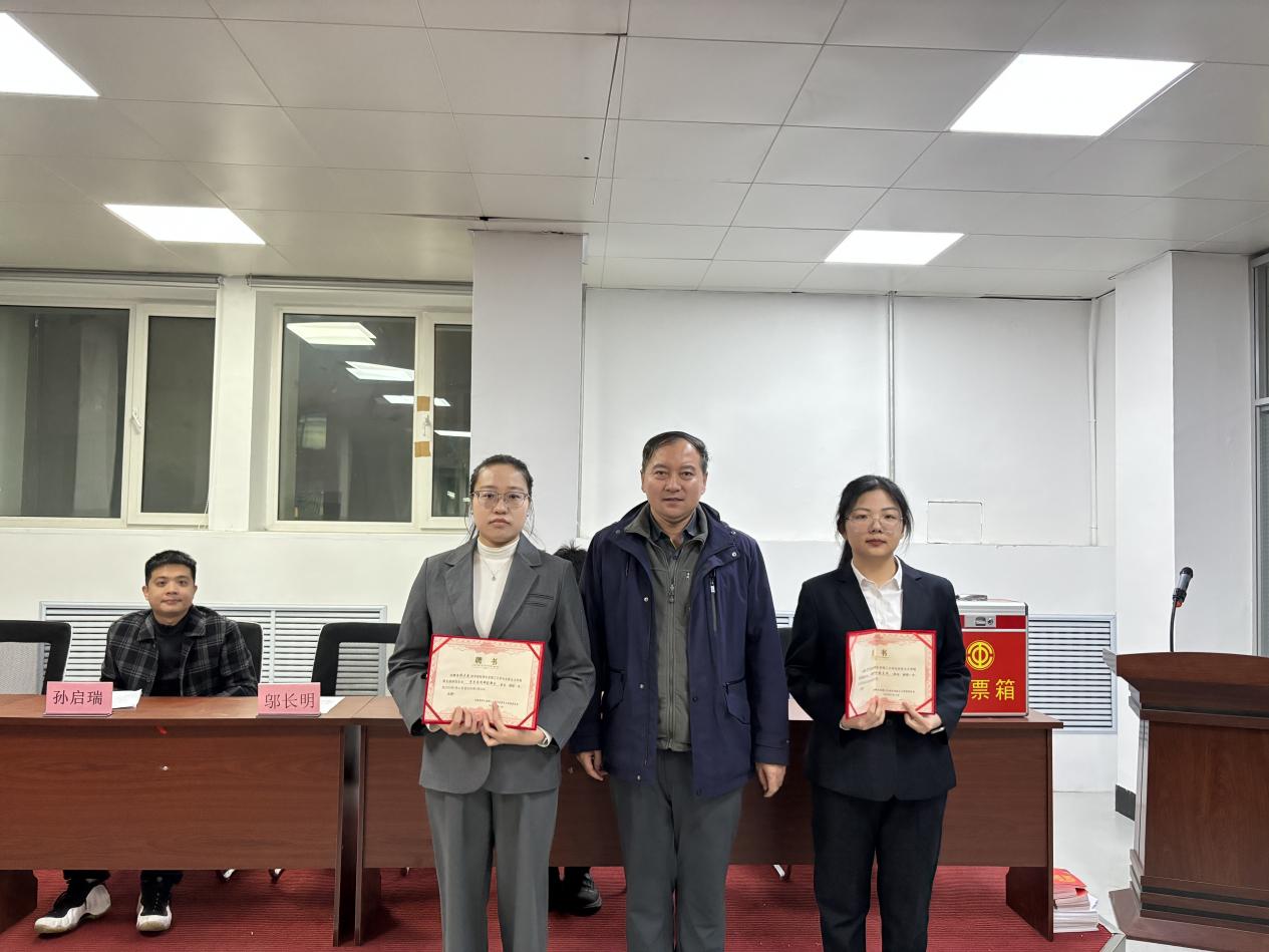 孙老师宣布本次大会的选举结果:陆绍国、张玉、蒋帅3人当选为马克思主义学院第五届研究生会主席团成员,聘任王欣然为第五届研究生会副秘书长。