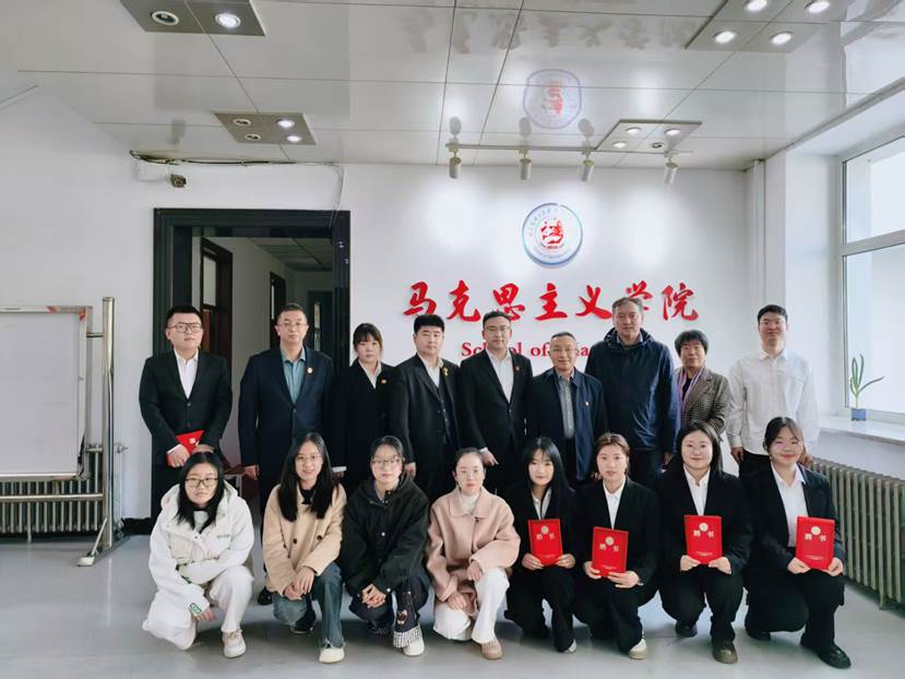 哈尔滨市南岗区志愿服务联合会会长滕兆达、秘书长金宇婷、外联部部长刘志明、副秘书长孙涛出席活动。马克思主义学院党委书记肖庆生,党委副书记邬长明,德法教研部主任、大中小学思政课一体化研究中心首席研究员兼办公室执行主任王晨教授以及学院研学会、“青马逐梦”宣讲团学生代表参加活动,仪式由王晨教授主持。