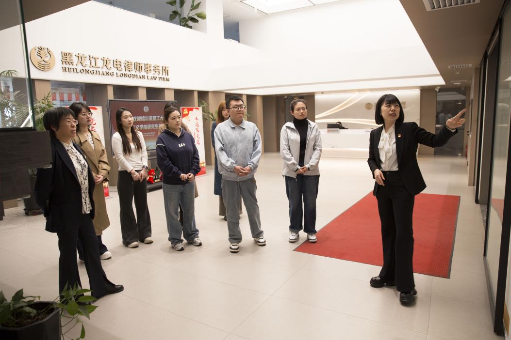 为深化思政教育与法治实践深度融合,落实立德树人根本任务,丰富实践育人载体,2026年4月16日下午14:00,马克思主义学院德法教研部主任王晨教授带领7名思想政治教育专业硕士研究生,走进黑龙江龙电律师事务所,开展主题研学实践活动。黑龙江龙电律师事务所党支部副书记胡晓丹热情接待并全程参与活动。